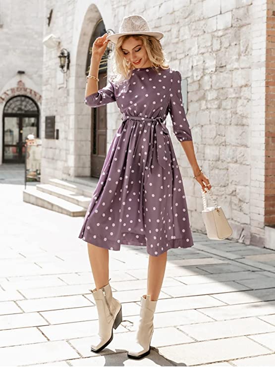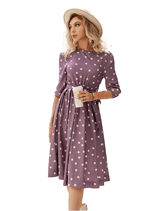 Product Details Material CompositionPOLYETER 70% StyleFit And Flare PatternPolka Dots Neck StyleRound Nack Country of OriginIndia About this Item Style Name : Western Dress, Material Composition: Premium Quality Poly Rayon Sleeve Type : Puff Sleeves, Sleeve Length : Three Quarter Length Sleeve Occasion: Travelling, suits in spring summer, Dating, Party, Evening, Casual, Home, Office, Vacation, Night out , Shopping, Birthday Party, Kitty Party , College Functions etc., Suitable for : All Season[Winter Summer Monsoon] MODEL DETAIL :- MODEL WEARING M SIZE, Height of Model : 68.5 ,Bust Size : 33 , West Size : 24 , Hips Size :36